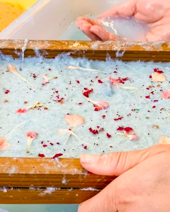 Výroba ručního papíru s květinami