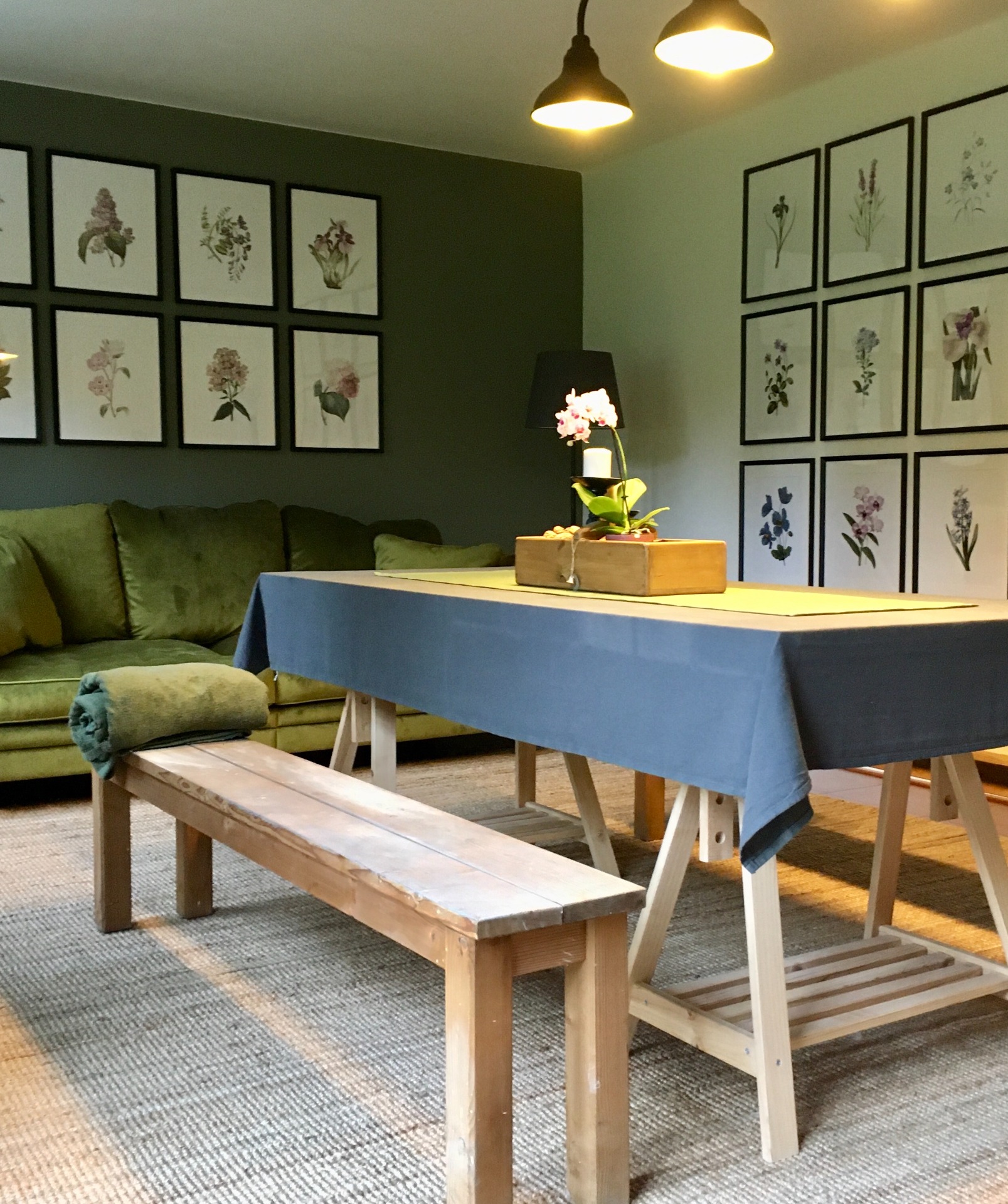 Uvnitř vás čeká útulná ložnice, koupelna s vanou, společenská místnost a plně vybavená kuchyň s výhledem do zahrady. Každý detail je laděn v přírodních tónech a doplněn o ručně vyrobené dekorace, které dodávají prostoru teplo domova.