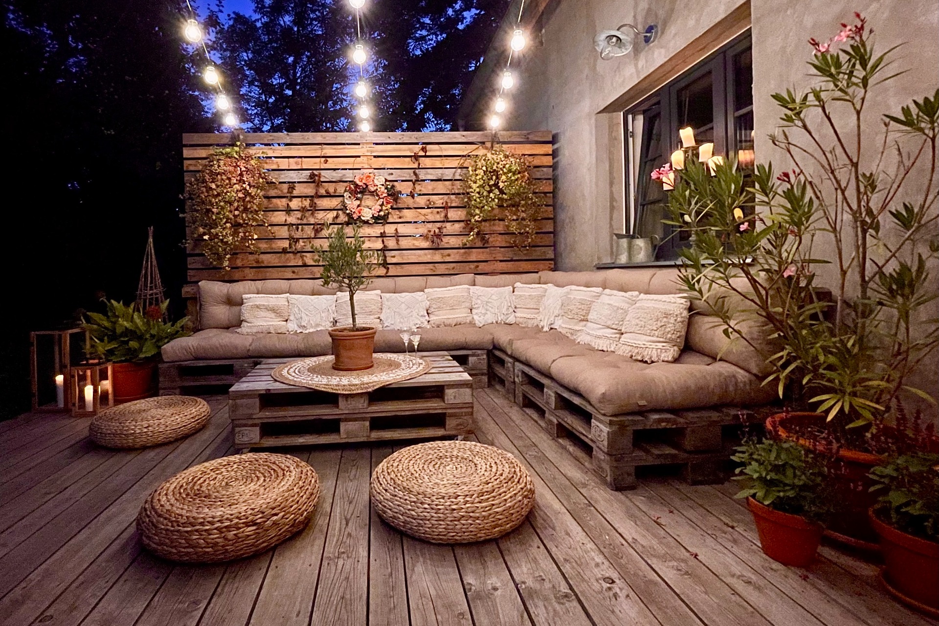 Součástí apartmánu je soukromá terasa, kde si můžete vychutnat snídani z lokálních bio produktů nebo večer posedět při svíčkách.